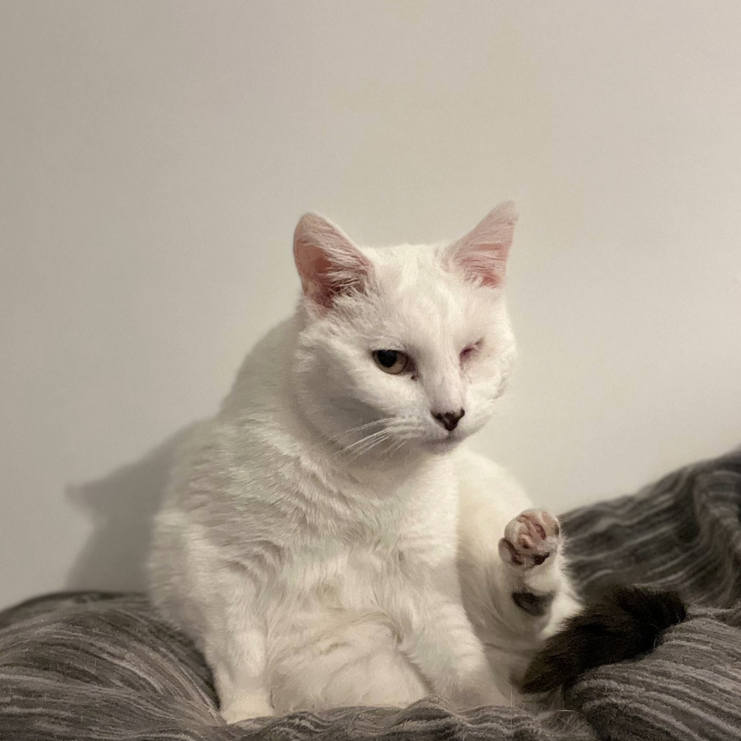 Shrimply once led a life of crime, but after losing an eye, she was inspired to start anew. She now enjoys basking in sunlight, running nightly zoomies, and checking out the @warehousebdeals Instagram.