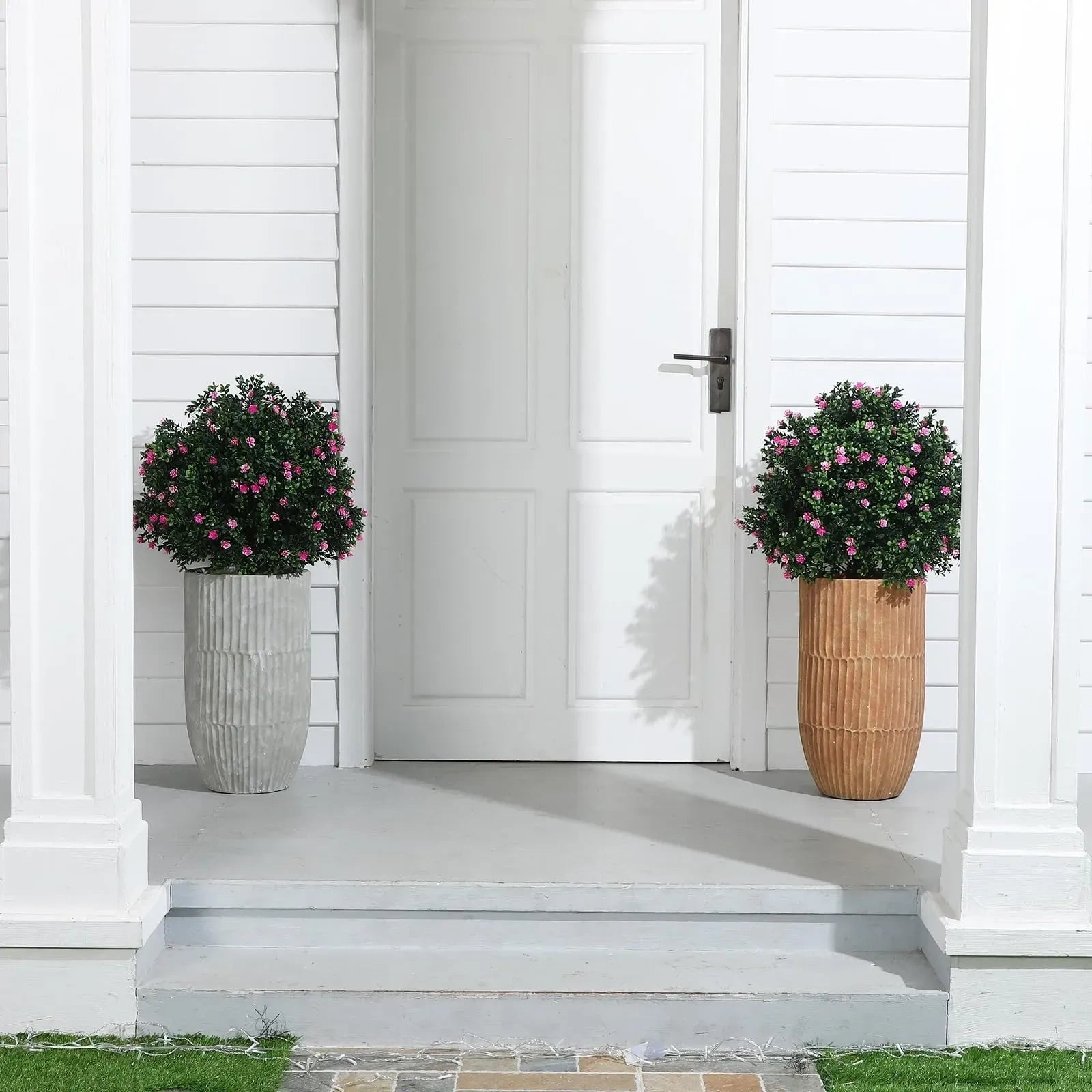 - These artificial plants are suitable for outdoor use, featuring realistic details and constructed to withstand various weather conditions, perfect for porches, patios, and gardens