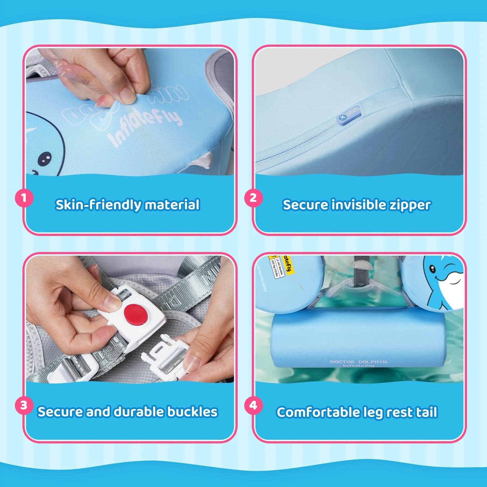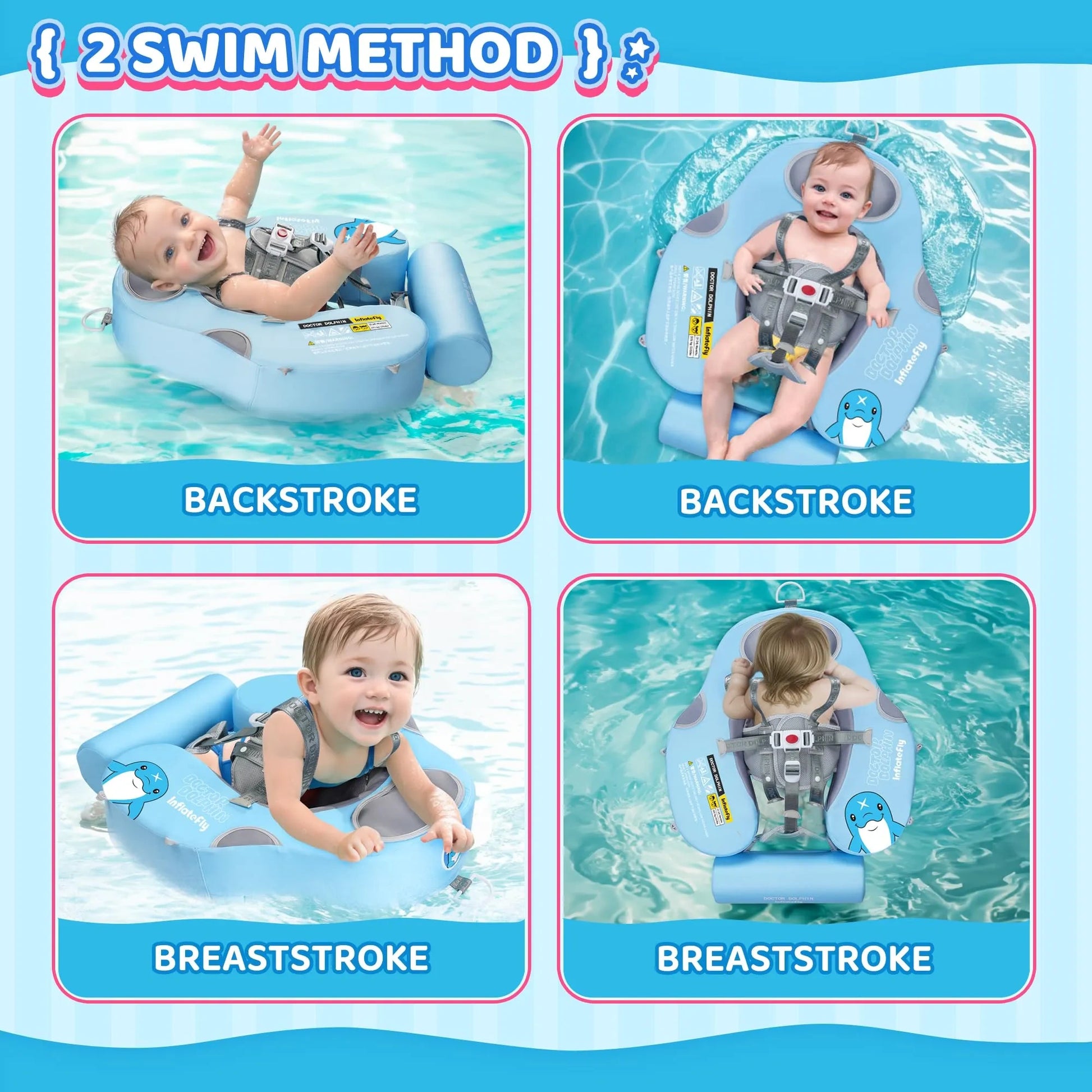 - It is designed with an added tail or similar structure to prevent the float from flipping backward, ensuring enhanced safety and stability for the infant during swimming