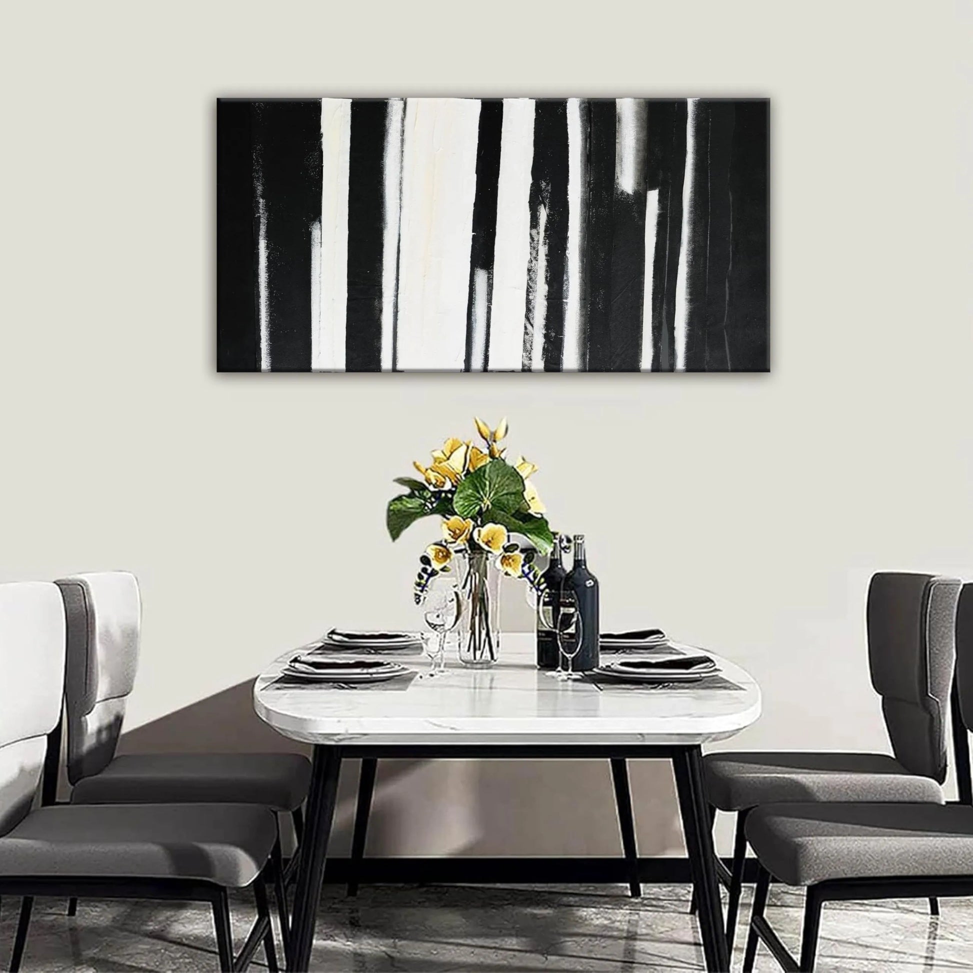 This QSQ Black and White Abstract Wall Art is a modern decoration featuring minimalist stripes, perfect for adding a sophisticated touch to your living room, bedroom, or office. The artwork measures 20" x 40".