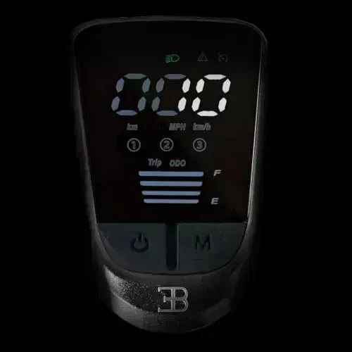 - Display - Large LED screen displaying speedometer, odometer, speed mode, and battery life.