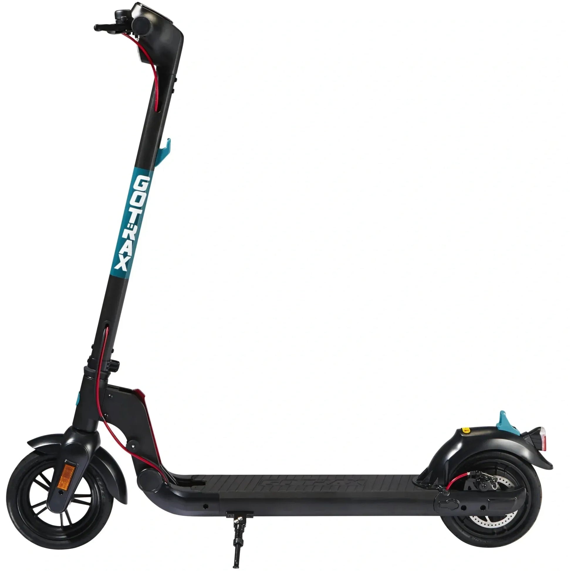 The GOTRAX Apex PRO Commuting Electric Scooter is an ideal entry-level electric scooter for adults, combining portability, speed, and safety for the last-mile commute. It is equipped with a 250W motor (Average) that reaches a top speed of 15.5 MPH. The 36V,6 Ah lithium-ion battery provides a reliable range of up to 15.5 miles per charge. Designed for comfort on city streets, it features 8.5 inch pneumatic (air-filled) tires that absorb bumps and a wide deckboard. The lightweight, one-touch folding aluminum frame makes carrying and storage easy. Safety features include a dual braking system (rear disc brake and EABS anti-lock brake) and bright LED front and rear lights. It is UL 2272 Certified.