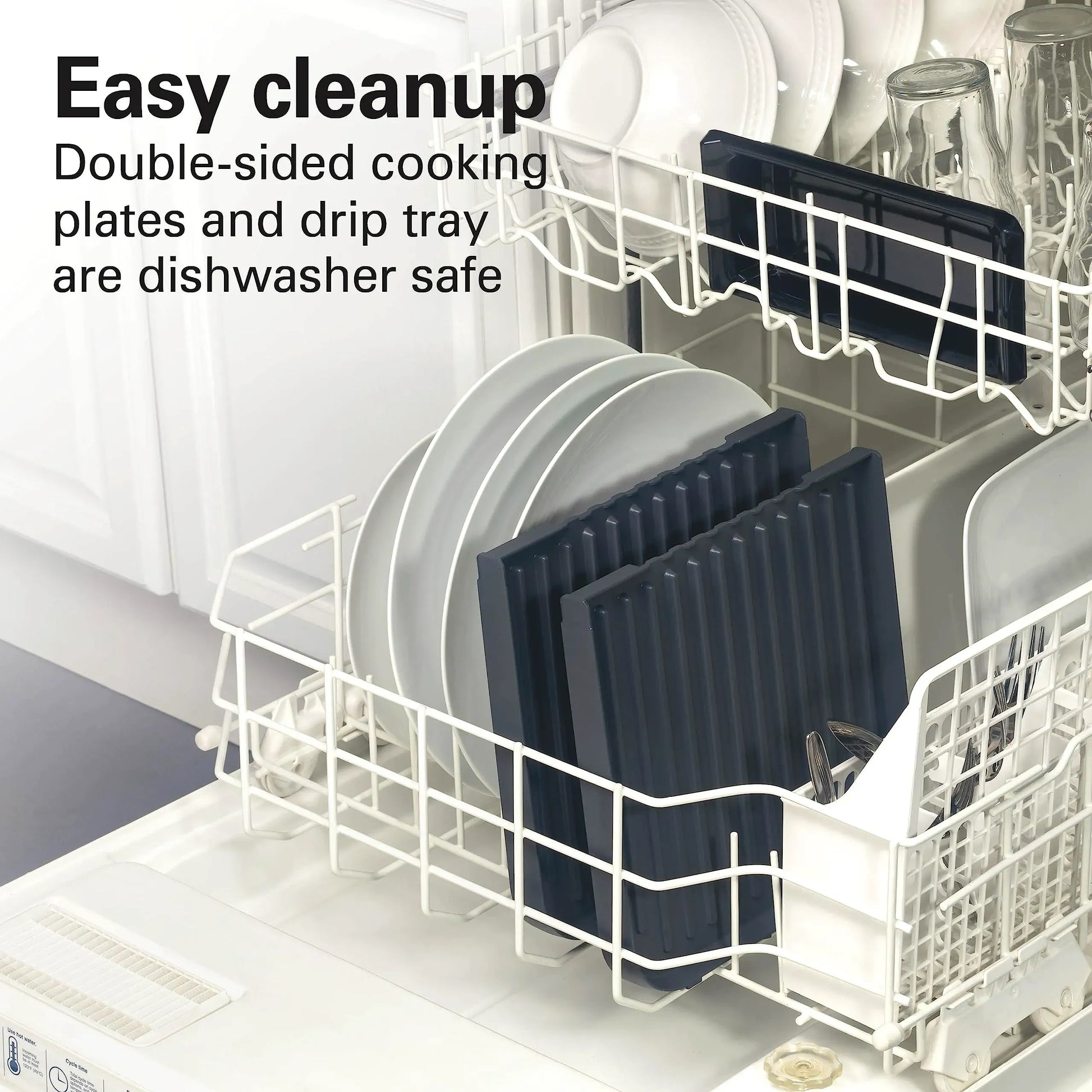 - Cleaning - Removable, dishwasher-safe cooking plates and a removable drip tray.