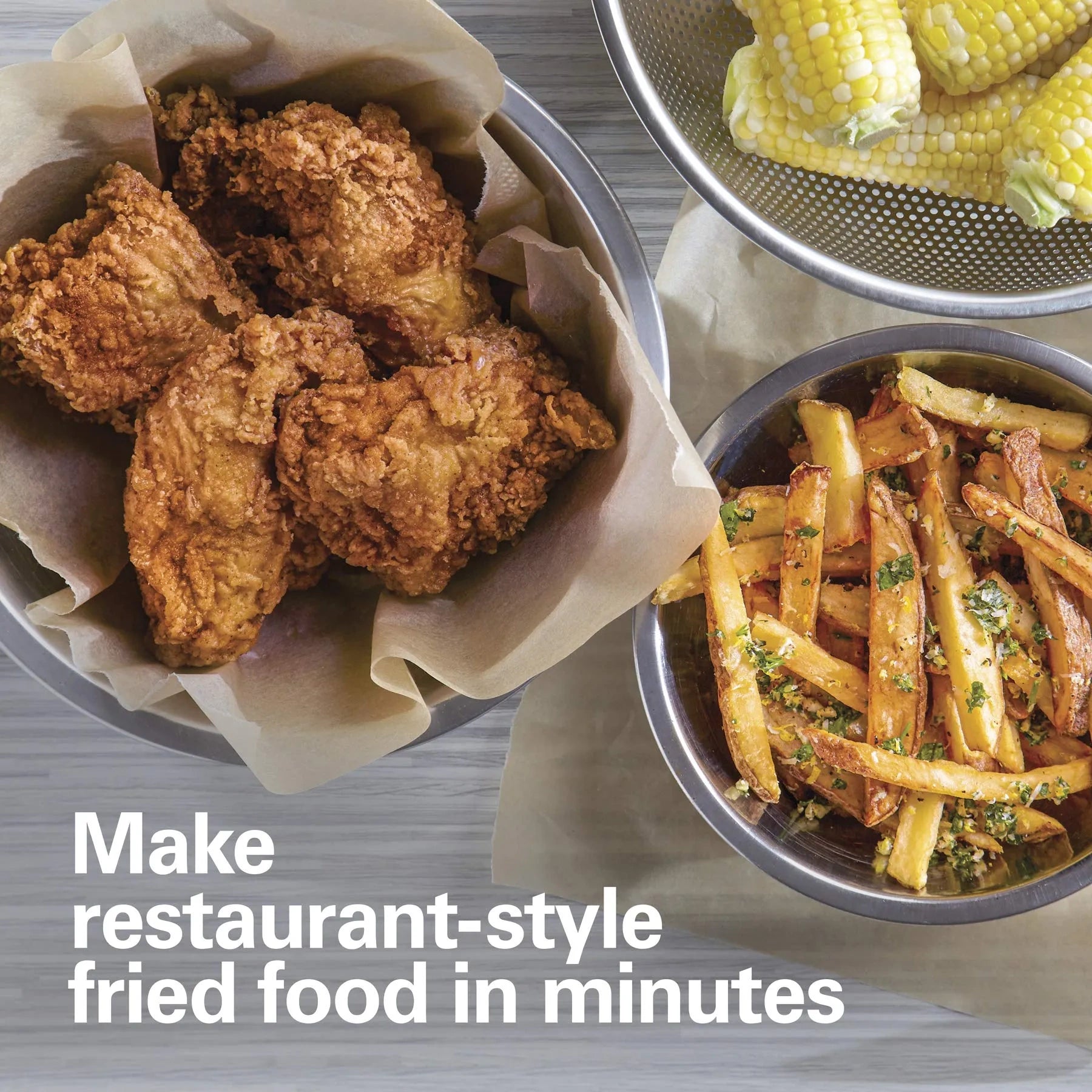 - Professional-Style Frying - Features an immersed heating element for fast heating and quick temperature recovery.