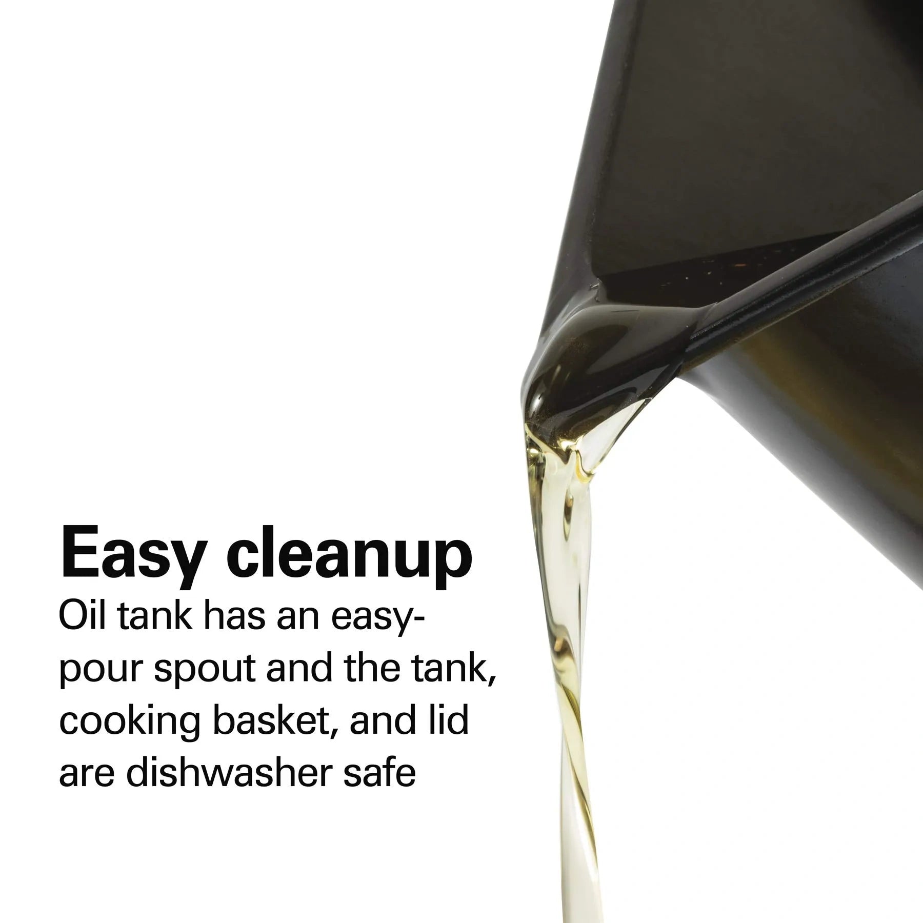 - Easy Cleanup - The oil pot, frying basket, and lid are all dishwasher-safe, and the pot has an easy-pour spout for mess-free draining.