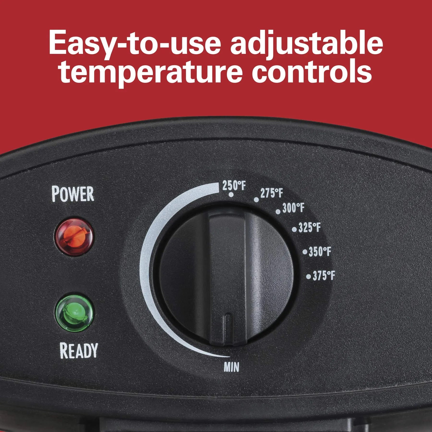 - Adjustable Temperature - The temperature dial allows you to set the perfect frying temperature, with a range from 250°F to 375°F.