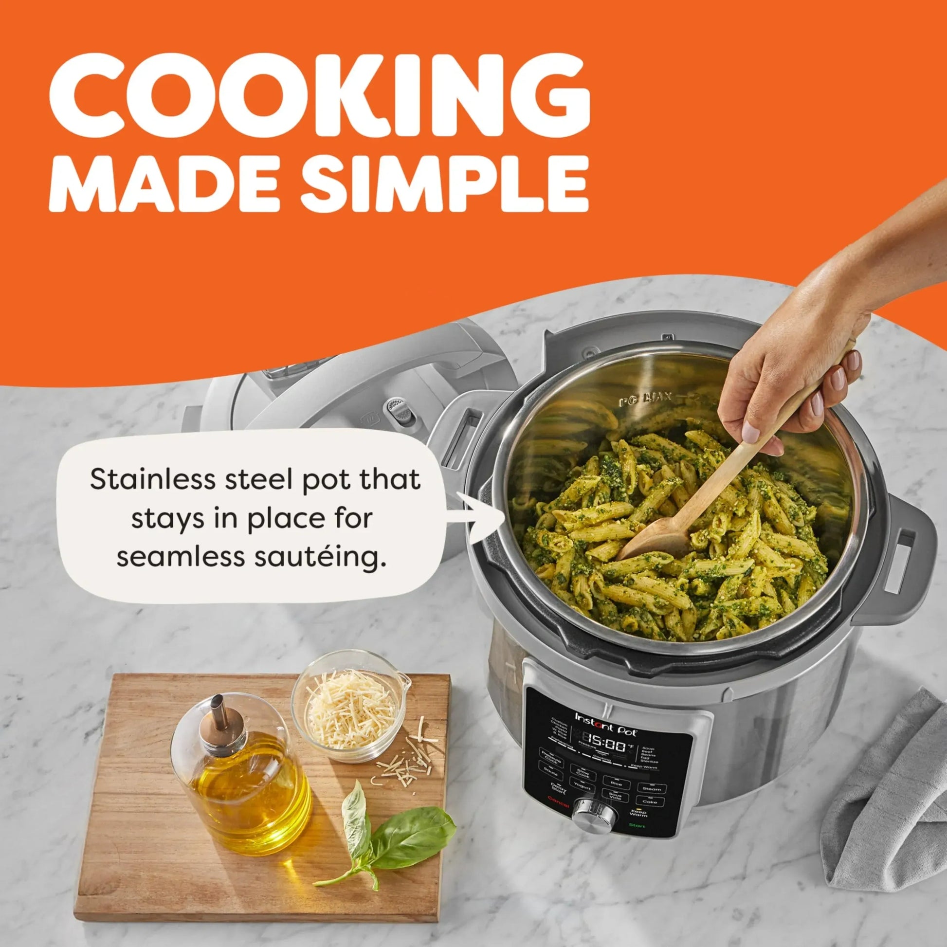 The Instant Pot Duo Plus is a versatile 9-in-1 multi-use pressure cooker designed to simplify meal preparation with speed and convenience. It combines the functionality of a pressure cooker, slow cooker, rice cooker, steamer, sauté pan, food warmer, yogurt maker, sous vide, and sterilizer all in one appliance. This next-generation model features Whisper Quiet™ Steam Release with a remote button for added safety and the Duo Plus Easy-Seal Lid that automatically seals when closed. With 25 customizable Smart Programs and a clear LCD display offering step-by-step guidance, the Duo Plus makes cooking up to 70% faster and takes the stress out of mealtime for families, meal preppers, and growing households.