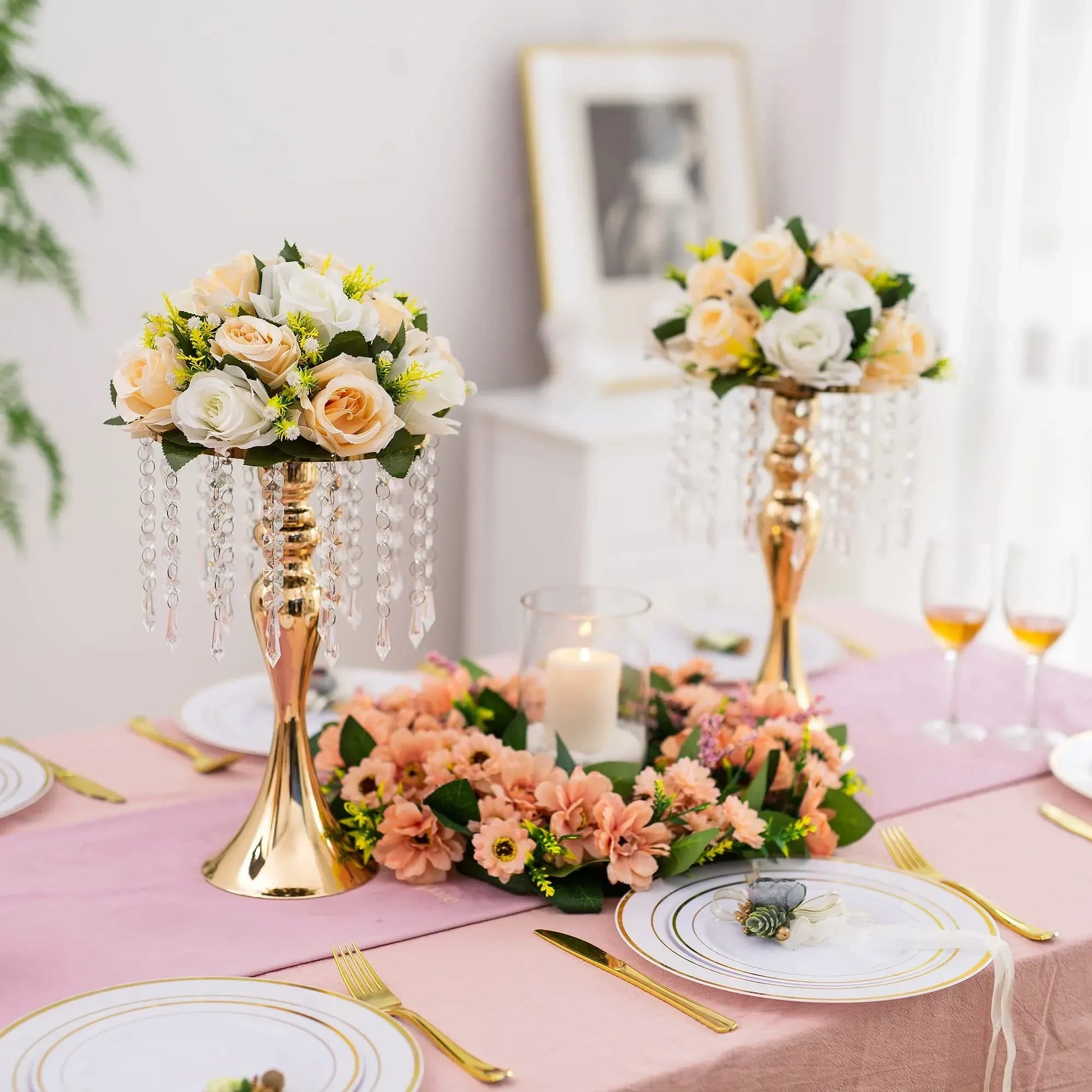 Create breathtaking, elegant floral displays for weddings, parties, or home decor with the Inweder 10 Pcs Vases for Centerpieces. This set of ten identical vases is designed specifically to elevate tablescapes with a sophisticated, modern touch. Each vase features a sleek, tall, and narrow geometric design, crafted from durable metal with a brilliant Gold finish. Perfect for holding large feather arrangements, silk florals, or cascading greenery, these vases provide height and drama without taking up excessive table space. They arrive as a convenient bulk set, making them an excellent choice for event planners and DIY wedding decor.