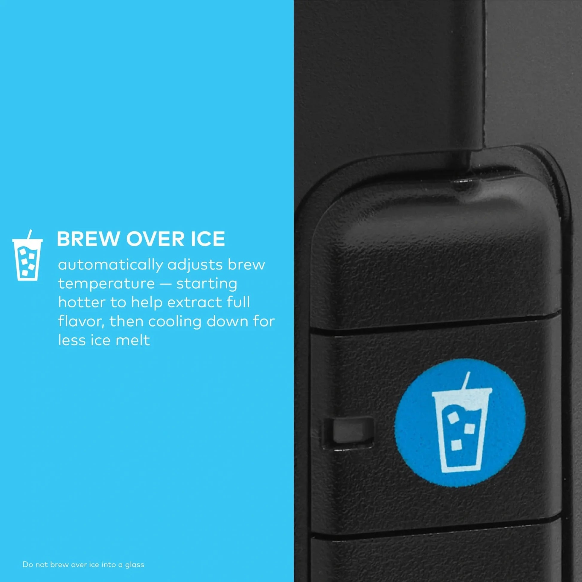 - Brew Over Ice - Dedicated Brew Over Ice button automatically adjusts temperature (starts hot, cools quickly) to minimize ice melt for full-flavored iced coffee.