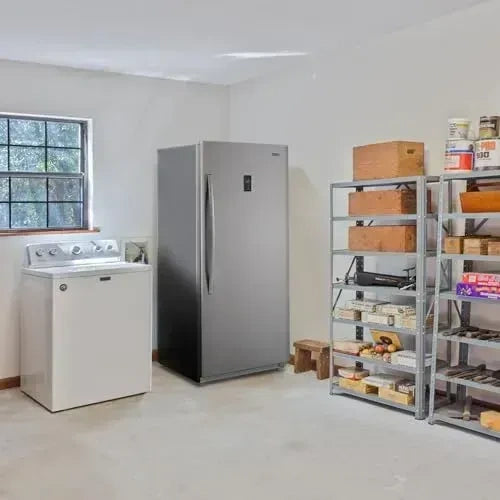 The Newair 13.8 Cu. Ft. Upright Convertible Freezer/Refrigerator in Stainless Steel is a versatile cold storage solution built for extreme conditions. Its Garage Ready design allows it to operate reliably in ambient temperatures from 32ºF to 110ºF. With its easy-to-use digital controls, you can effortlessly switch between a deep freezer and a refrigerator to suit your changing needs. The Frost-Free technology eliminates the need for manual defrosting, ensuring hassle-free maintenance. The upright design offers ample internal capacity with a smaller footprint than traditional chest freezers.