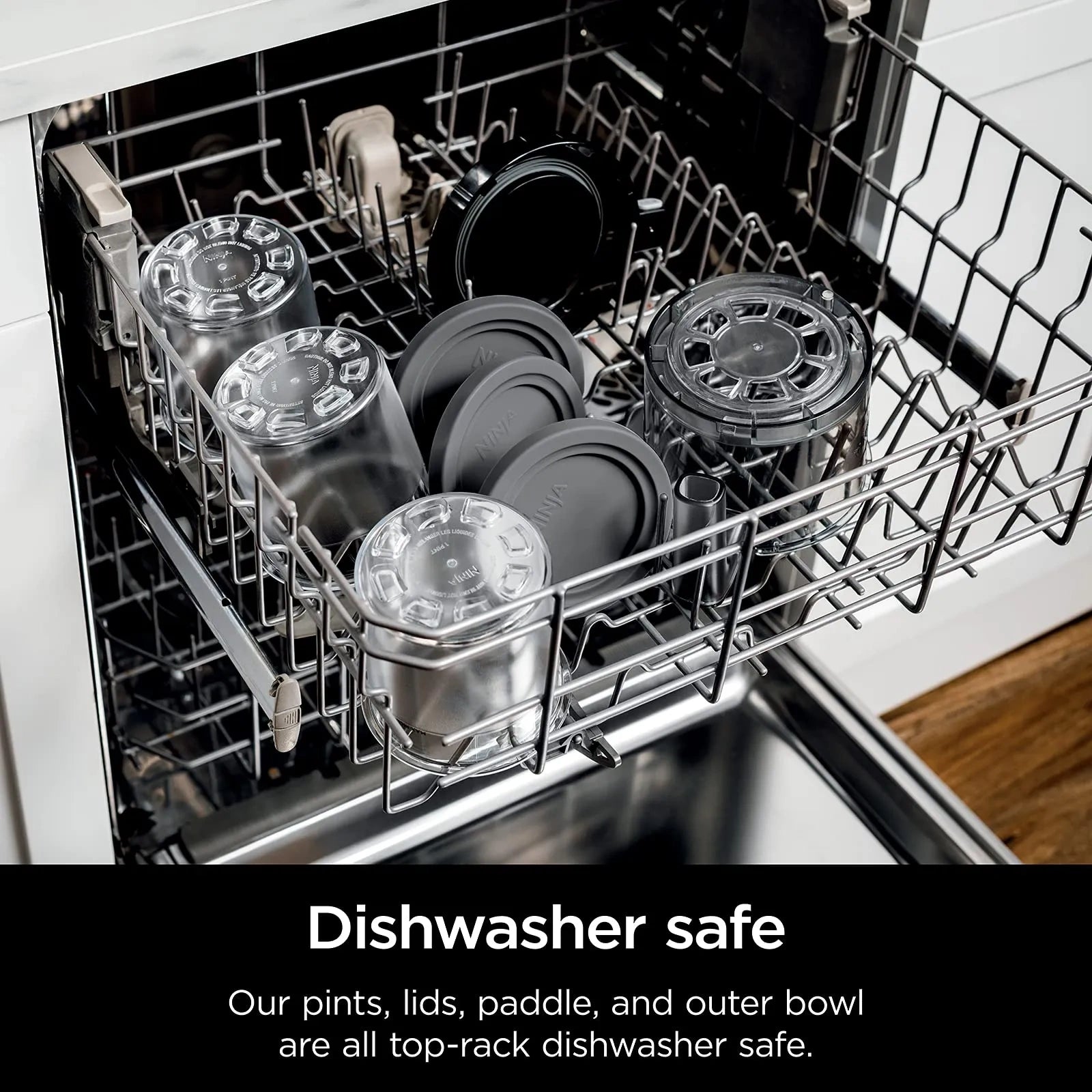 - Containers, lids, and paddle are top-rack dishwasher safe.