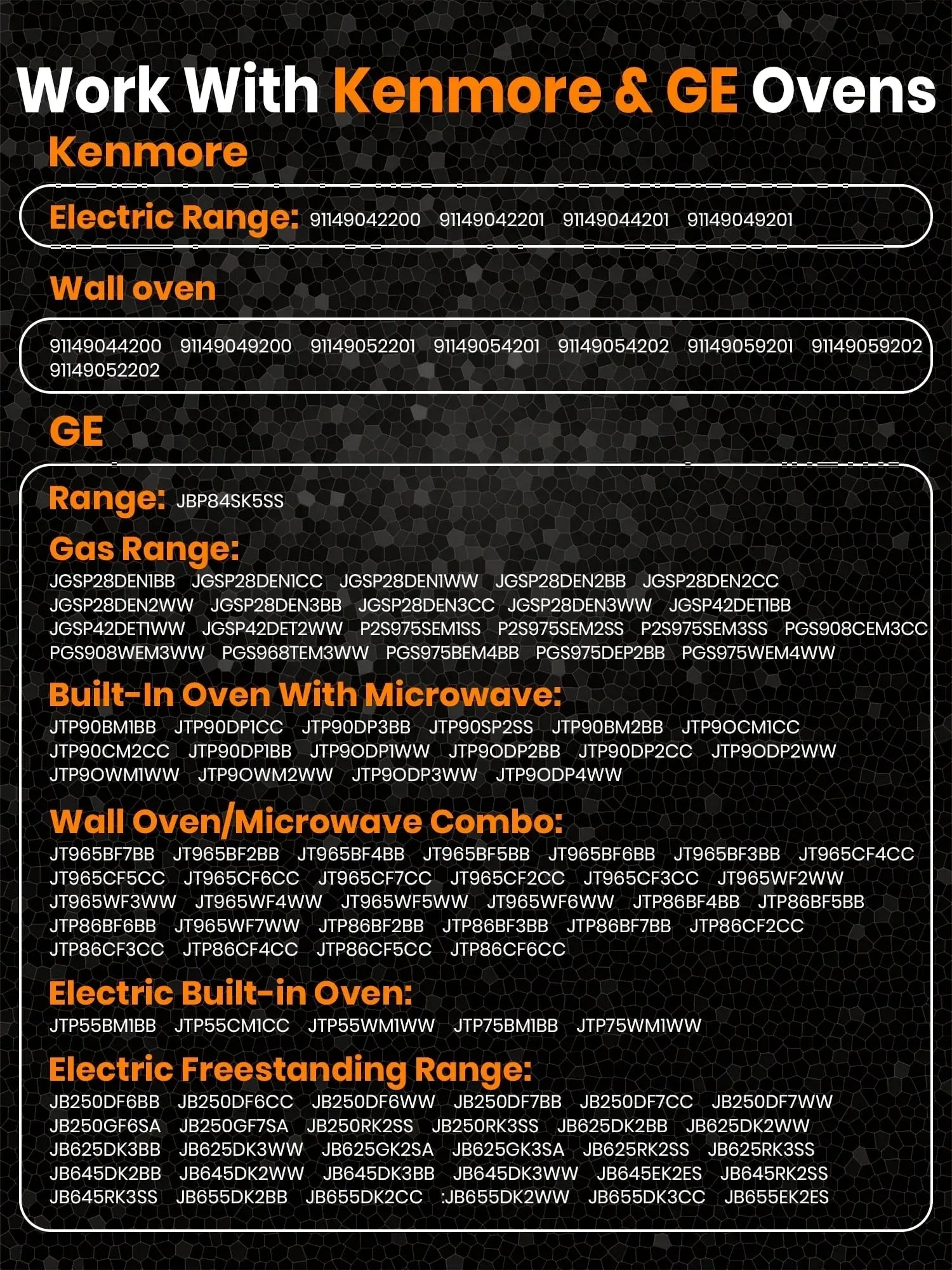 - Wide Compatibility - Fits various range and wall oven models from major brands including GE, Kenmore, Hotpoint, and Café.