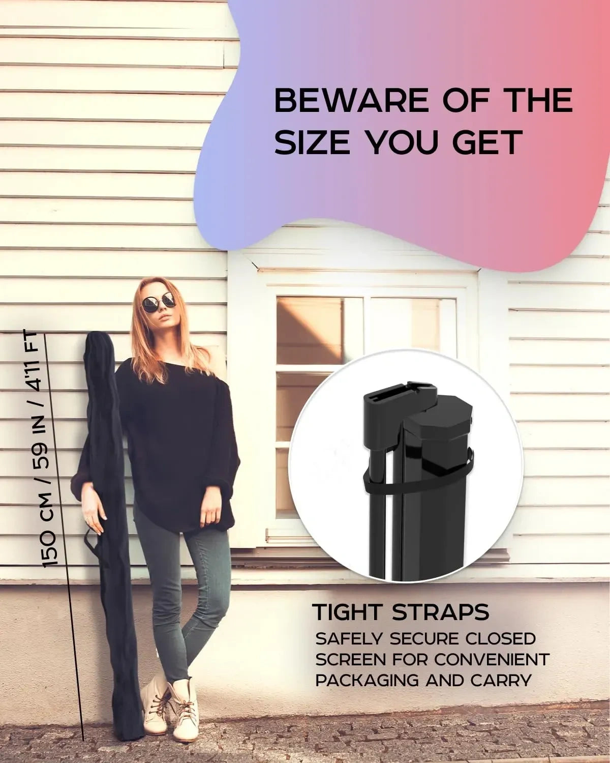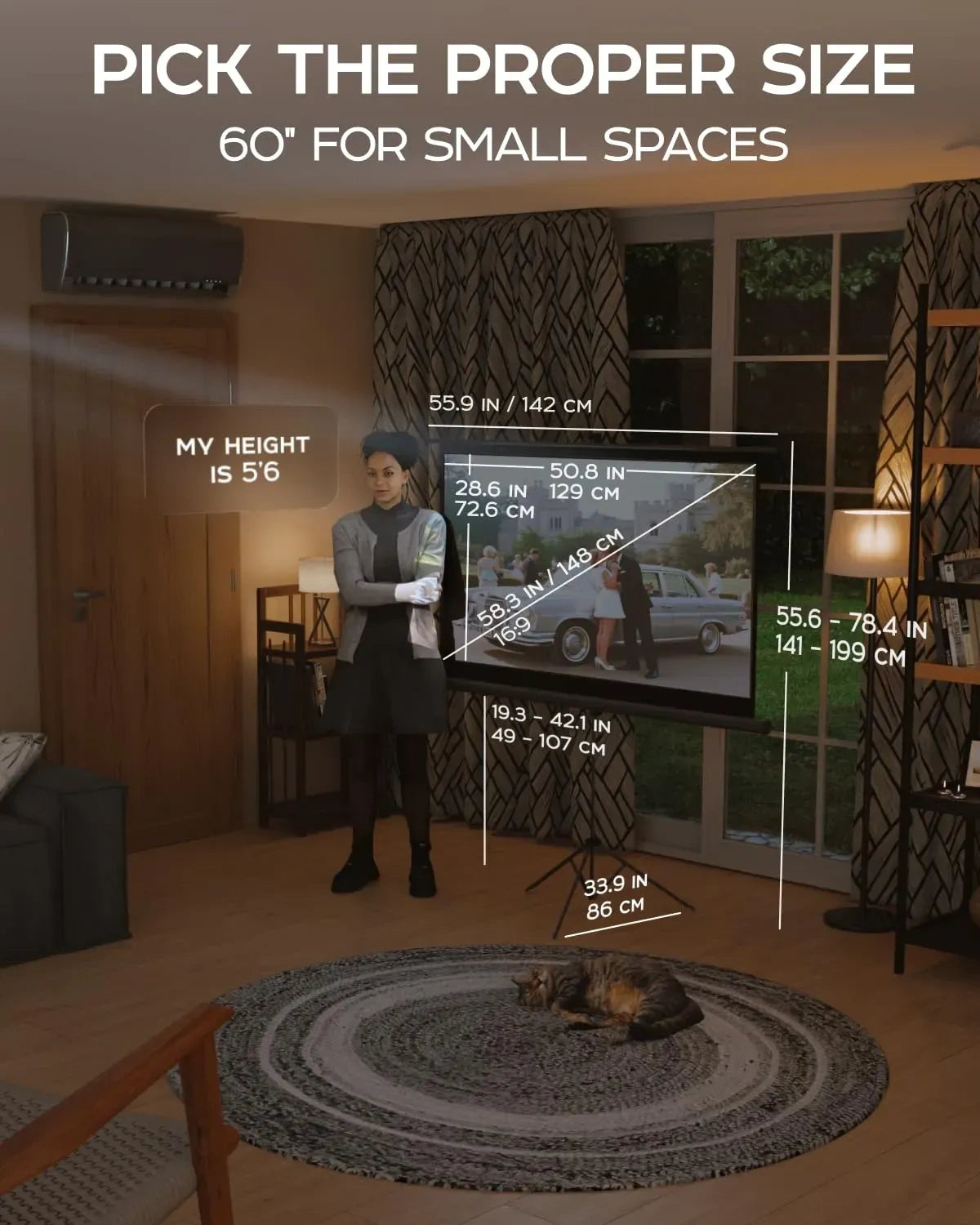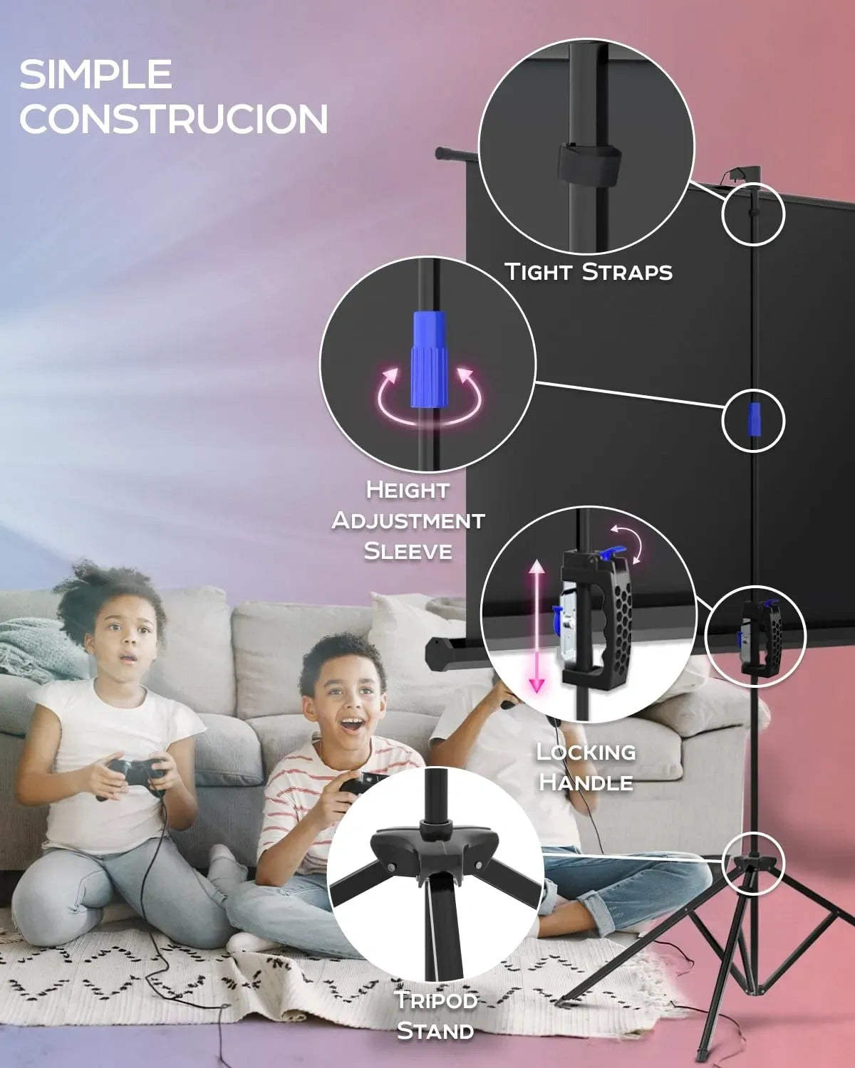 Create an instant, high-quality viewing area indoors or outdoors with the PropVue Projector Screen with Stand. This portable, 60-inch diagonal screen features a premium 16:9 HD format surface, ideal for both movie nights and professional presentations. Designed to be completely Wrinkle-Free, the screen delivers bright, clear, and sharp images for superior viewing. It is supported by a stable Tripod Stand and features an easy, tool-free setup and breakdown. The entire system is engineered for mobility, packing neatly into the included Carry Bag along with Tight Straps, making it the perfect companion for backyard cinema, camping trips, classrooms, or conference rooms.