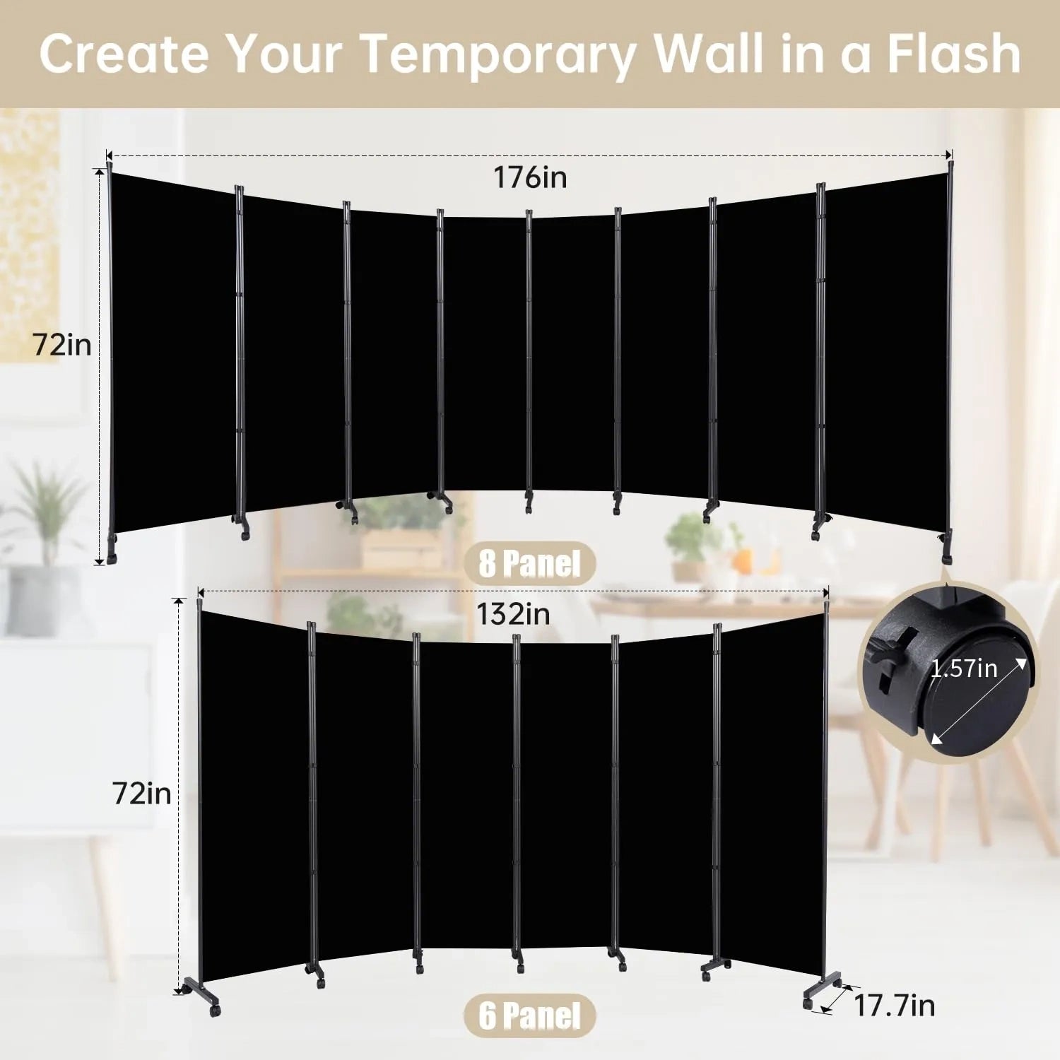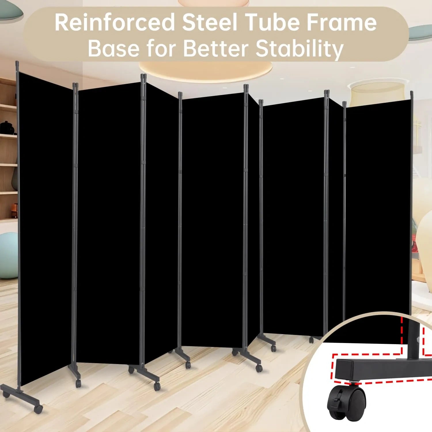 This 8-panel room divider features wheels for easy portability, making it perfect for office room partitions or creating flexible privacy screens indoors. The fabric panels offer room separation and a convenient partition wall divider solution.