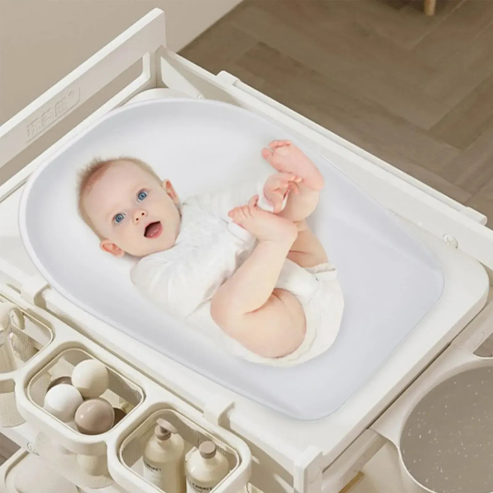 - Non-Slip Base - Equipped with an advanced non-skid grip design or suction cups on the base to securely anchor the pad to the changing table or dresser top.