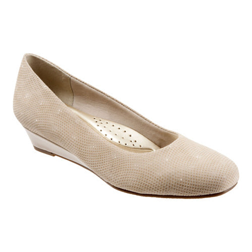 Enhance your office wardrobe with the womenâs Trotters Lauren dress wedge . The cushioned PU footbed offers comfort in every step, while the lightweight and flexible outsole provides traction and stability. Patent upper.; Antimicrobial tricot fabric upper lining with foam backing.; Comfort cushioned polyurethane footbed for added support.; Lightweight and flexible rubber outsole provides traction.; Heel Height: 1¼ inches; .
