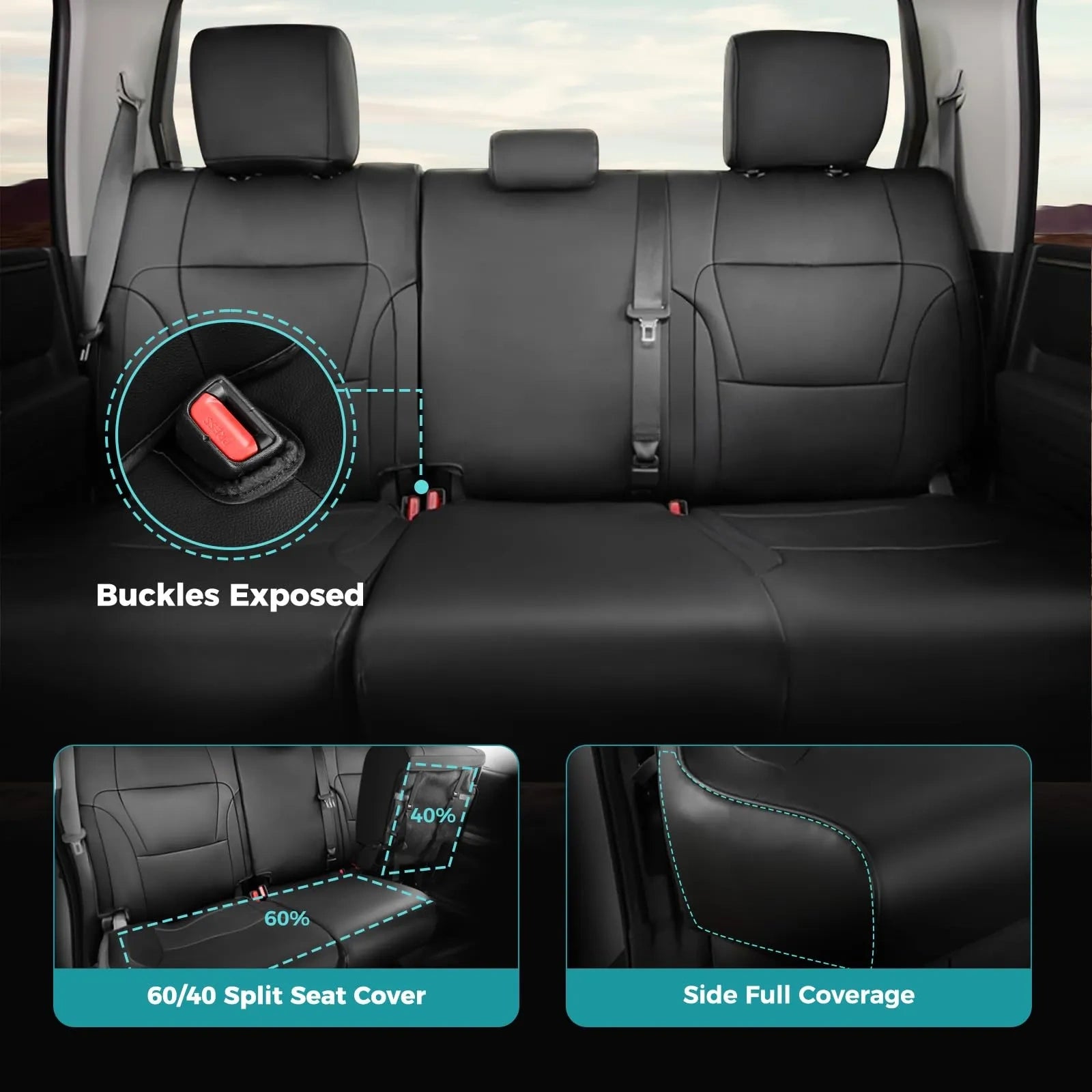 - The covers provide a full set of faux leather truck seat protectors, offering comprehensive coverage for all seats in the vehicle for maximum interior preservation and a luxurious feel