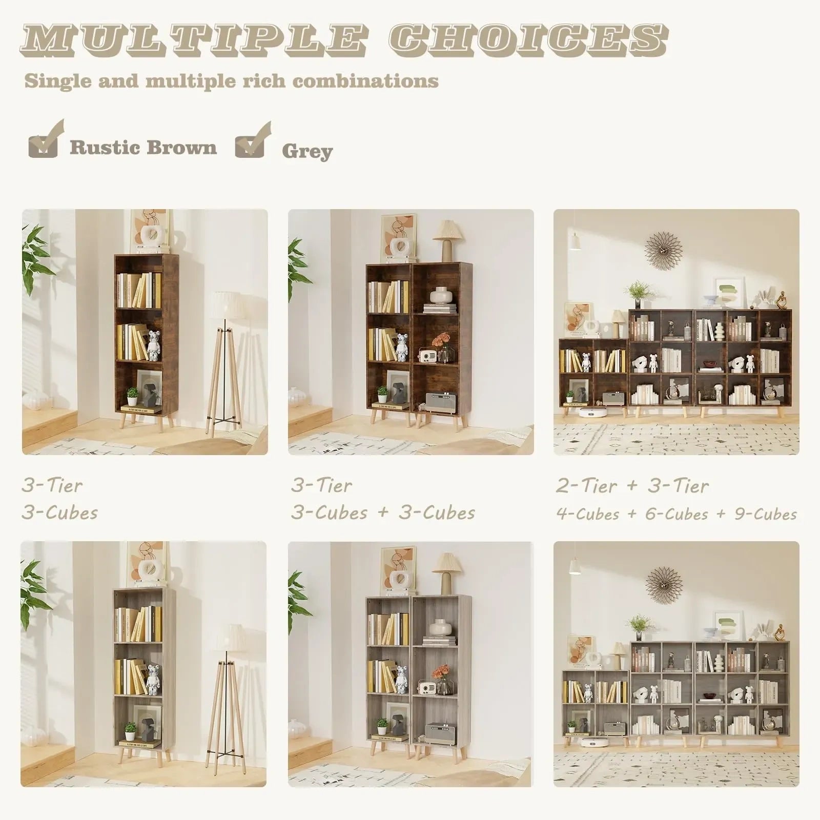 Add versatile storage and a touch of mid-century flair to any room with the Lkeiyay Wooden 4 Cube Open Bookcase. This 2-Tier Bookshelf features four spacious, open cubbies perfect for organizing books, displaying decorative items, or storing baskets. Constructed from durable engineered wood, the unit is finished in a warm Rustic Brown hue, while the contrasting solid wood tapered legs elevate the design, lending it that signature modern, mid-century look. Ideal for the living room, bedroom, or office, this space-saving cabinet organizer offers both stylish display space and practical, clutter-free storage.